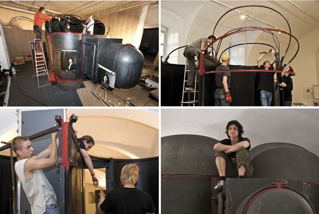 В начале 70-х годов двадцатого века два друга, один из которых отец Сюзанны Краус, физик Вернер Краус и художник Эрхард Хосле изобрели камеру, которая с помощью специальной оптики и автоматического затвора осуществляет экспонирование на черно-белую серебряно-желатиновую обращаемую фотобумагу формата 60х200 см изображения в пропорции 1:1. Причем процесс съемки в данном случае происходит примерно так: человек заходит внутрь самой камеры (размеры 7 х 4 х 3 метра вполне это позволяют) наподобие современной фото-будки, закрывает за собой дверь, принимает желаемую позу, смотря в большое зеркало, и нажимает на кнопку спуска на специальном тросике, который ему дают непосредственно в руки. Все. Система зеркал вместо привычного объектива проецирует изображение прямо на фотобумагу.
